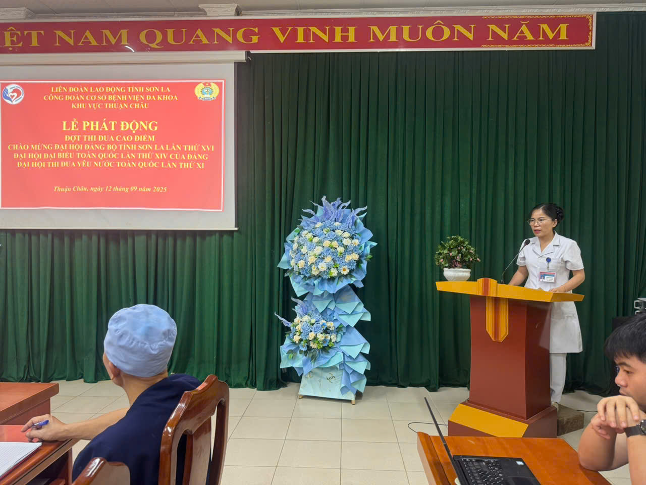 Hòa trong không khí thi đua sôi nổi của cả nước hướng tới chào mừng Đại hội Đảng bộ tỉnh Sơn La lần thứ XVI, Đại hội đại biểu toàn quốc lần thứ XIV của Đảng, và Đại hội Thi đua yêu nước toàn quốc lần thứ XI, hôm nay, ngày 12/9/2025, Công đoàn cơ sở Bệnh viện Đa khoa khu vực Thuận Châu chính thức phát động đợt thi đua cao điểm với chủ đề: “120 ngày sáng tạo, bứt phá, hoàn thành thắng lợi mục tiêu, nhiệm vụ năm 2025”
