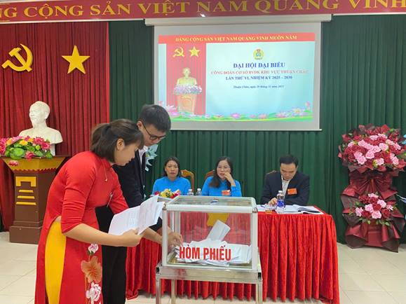 Đại hội đã tiến hành bầu Ban Chấp hành Công đoàn cơ sở nhiệm kỳ 2025 – 2030 gồm 07 đồng chí, trong đó: Đ/c Lường Thị Tiểm tái cử Chủ tịch Công đoàn cơ sở; Đ/c Trần Thị Điệp được bầu giữ chức Phó Chủ tịch Công đoàn kiêm Chủ nhiệm Ủy ban Kiểm tra Công đoàn; Đồng thời bầu 02 đại biểu đi dự Đại hội Công đoàn cấp trên.