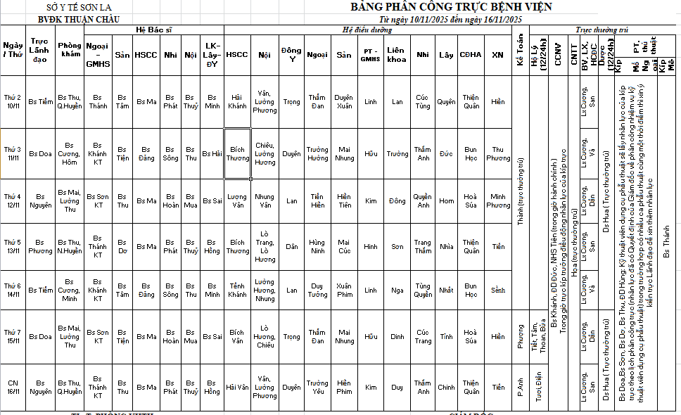 Thứ 6, 07/11/2025 | 15:36 A- A A+ | lịch trực 10/11-16/11/2025 Đọc bài Lưu LỊCH TRỰC BV.pdf Tổng số điểm của bài viết là: 0 trong 0 đánh giá Click để đánh giá bài viết