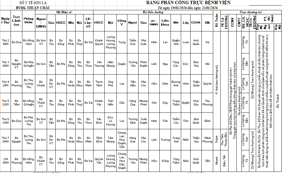 Thứ 6, 16/01/2026 | 15:07 A- A A+ | lịch trực 19/01-25/01/2026 Đọc bài Lưu CamScanner 16-01-2026 15.06.pdf Tổng số điểm của bài viết là: 0 trong 0 đánh giá Click để đánh giá bài viết