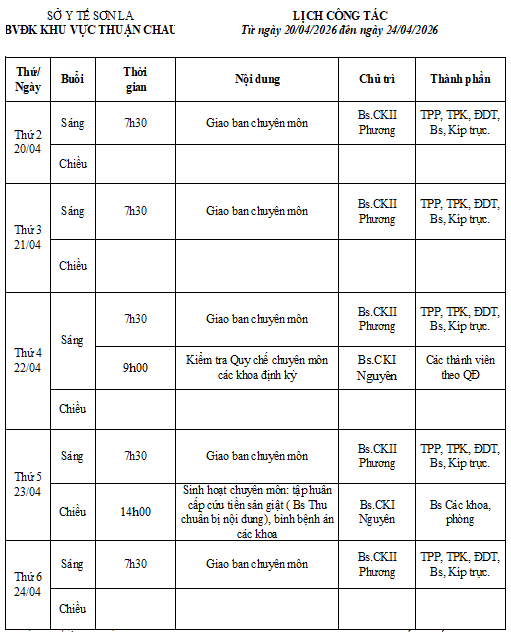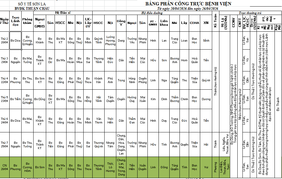 Thứ 6, 17/04/2026 | 16:02 A- A A+ | lịch trực 20/04-26/04/2026 Đọc bài Lưu lịch trực tháng 4.pdf Tổng số điểm của bài viết là: 0 trong 0 đánh giá Click để đánh giá bài viết