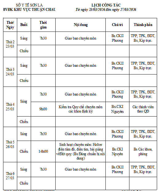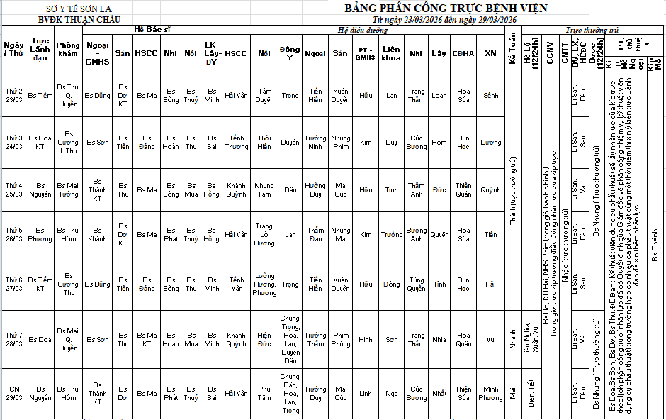 Thứ 6, 20/03/2026 | 16:06 A- A A+ | lịch trực 23/03-29/03/2026 Đọc bài Lưu Lịch trực.pdf Tổng số điểm của bài viết là: 0 trong 0 đánh giá Click để đánh giá bài viết
