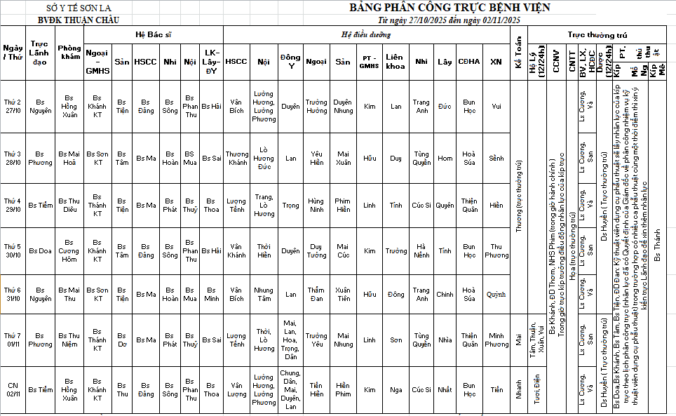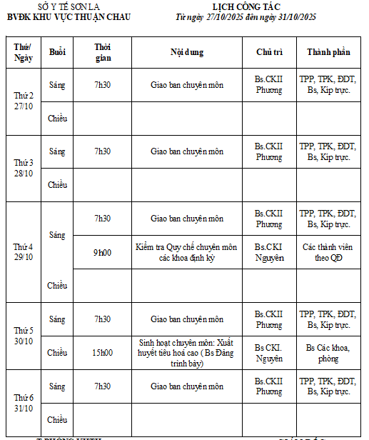 Thứ 6, 24/10/2025 | 15:47 A- A A+ | lịch trực 27/10-02/11/2025 Đọc bài Lưu lịch trực.pdflịch công tác.pdf Tổng số điểm của bài viết là: 0 trong 0 đánh giá Click để đánh giá bài viết