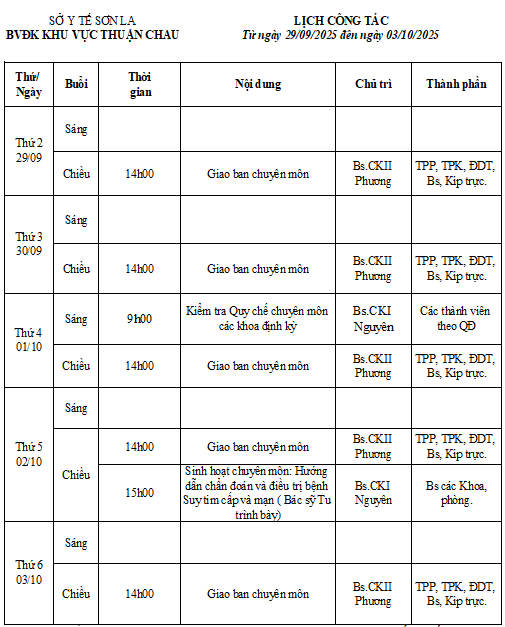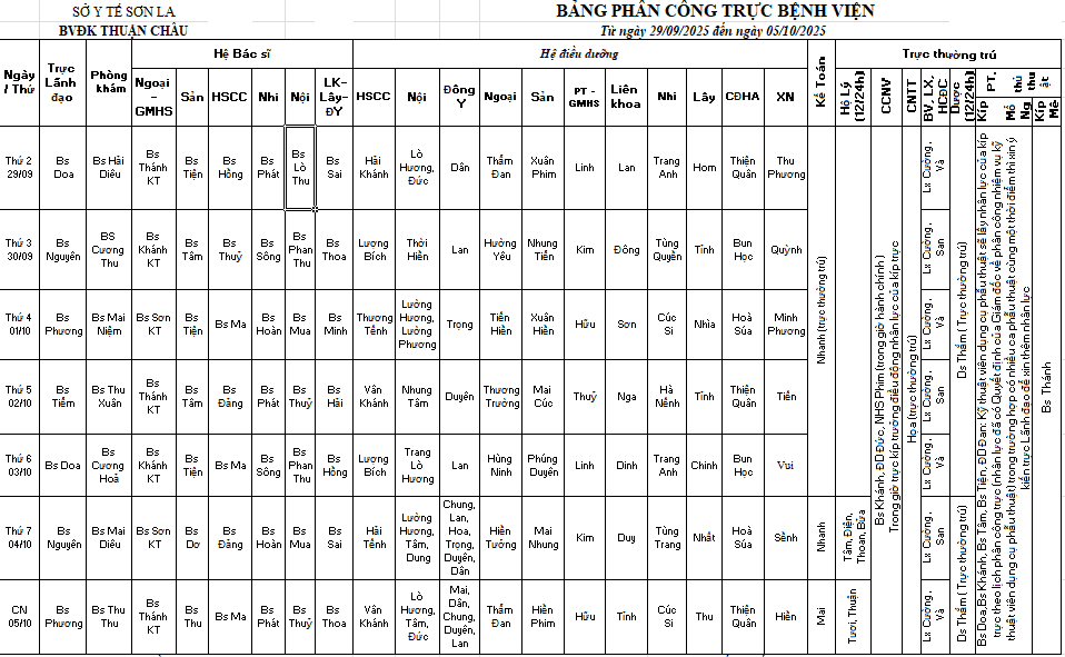 Thứ 3, 07/10/2025 | 10:09 A- A A+ | lịch trực 29/09-05/10/2025 ( bản chỉnh sửa) Đọc bài Lưu Tổng số điểm của bài viết là: 0 trong 0 đánh giá Click để đánh giá bài viết