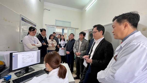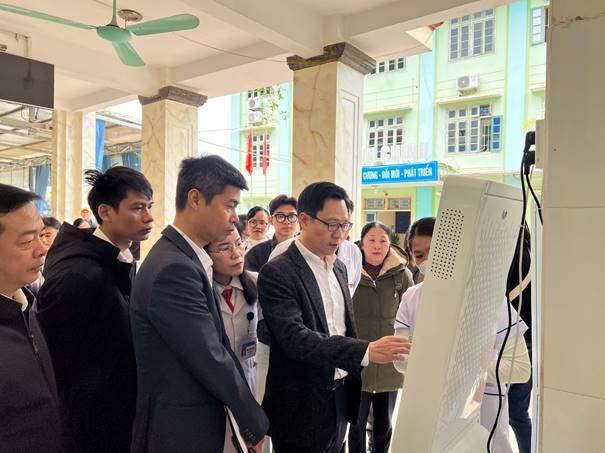 Ngay sau Hội nghị, Đoàn công tác đã trực tiếp khảo sát, tham quan quy trình triển khai bệnh án điện tử tại bệnh viện, từ khâu tiếp đón, khám bệnh, chỉ định cận lâm sàng đến điều trị nội trú. Qua đó cho thấy sự phối hợp đồng bộ, nhịp nhàng giữa các khoa, phòng trong quá trình vận hành hệ thống EMR.