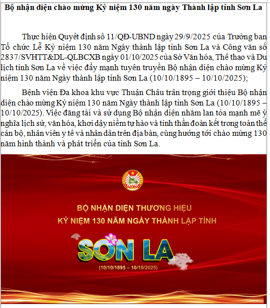 Thứ 2, 06/10/2025 | 11:16 A- A A+ | Bộ nhận diện chào mừng Kỷ niệm 130 năm ngày Thành lập tỉnh Sơn La Đọc bài Lưu Tổng số điểm của bài viết là: 0 trong 0 đánh giá Click để đánh giá bài viết