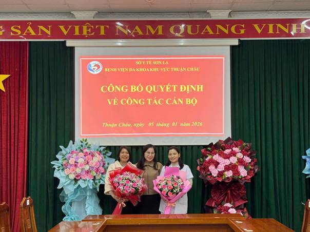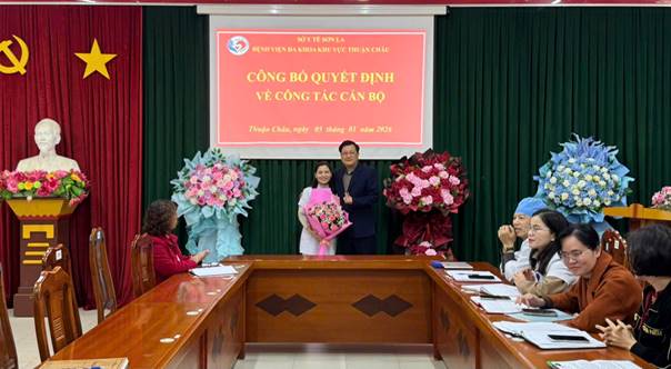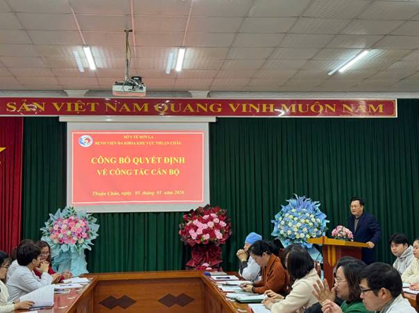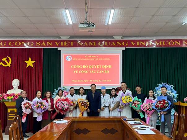 Sáng ngày 05/01/2026, Bệnh viện Đa khoa khu vực Thuận Châu long trọng tổ chức Hội nghị công bố Quyết định bổ nhiệm, bổ nhiệm lại lãnh đạo các khoa, phòng đối với 10 đồng chí cán bộ quản lý.
