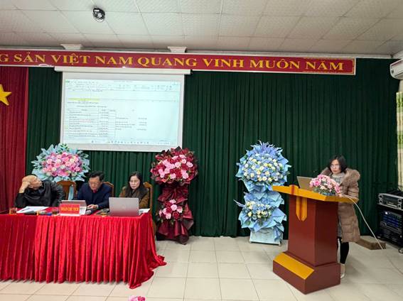 Đ/c Lường Thị Tiểm – Phó GĐBV – Chủ tịch CĐCS thông qua Báo cáo tổng kết hoạt động công đoàn năm 2025, phương hướng, nhiệm vụ năm 2026