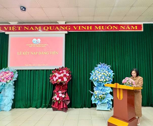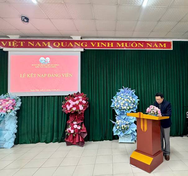Tại buổi lễ, đồng chí Hồ Thị Hợi – Bí thư Chi bộ Khối Phòng chức năng và đồng chí Mùa A Thánh – Bí thư Chi bộ Khối Ngoại đã công bố Quyết định kết nạp đảng viên đối với 03 đồng chí; đồng thời phân công đảng viên chính thức theo dõi, giúp đỡ các đồng chí đảng viên dự bị trong thời gian rèn luyện, phấn đấu, cụ thể: