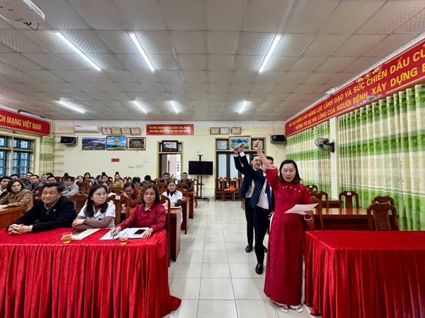 Trong không khí cả nước hân hoan chào đón xuân mới, chiều ngày 31/12/2025, Chi bộ Khối Phòng chức năng và Chi bộ Khối Ngoại đã long trọng tổ chức Lễ kết nạp đảng viên mới cho 03 quần chúng ưu tú gồm: đồng chí Lường Thanh Lượng, Cao Diệu Thúy (Chi bộ Khối Phòng chức năng) và đồng chí Trần Mạnh Hùng (Chi bộ Khối Ngoại).