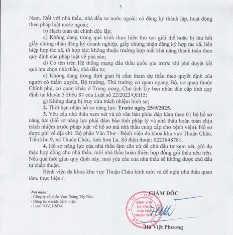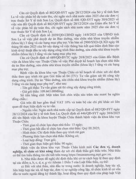 Yêu cầu báo giá gói thầu "Truyền thông, tư vấn dịch vụ khám chữa bệnh, chăm sóc người bệnh và đổi mới phong cách, thái độ phục vụ của cán bộ y tế hướng tới sự hài lòng của người bệnh năm 2025