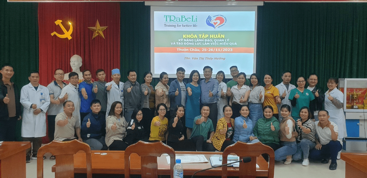 Nhằm bồi dưỡng, nâng cao kĩ năng lãnh đạo, quản lý, thay đổi nhận thức, tư duy, khơi dậy vai trò, trách nhiệm, lòng tận tụy của đội ngũ cán bộ lãnh đạo, quản lý tại Bệnh viện. Trong 02 ngày 25 và 26/11/2023, Bệnh viện đa khoa huyện Thuận Châu đã hợp đồng với Công ty tư vấn và đào tạo TRABELI tổ chức Khóa tập huấn về kỹ năng lãnh đạo, quản lý và tạo động lực làm việc hiệu quả cho đội ngũ cán bộ lãnh đạo, quản lý của Bệnh viện.